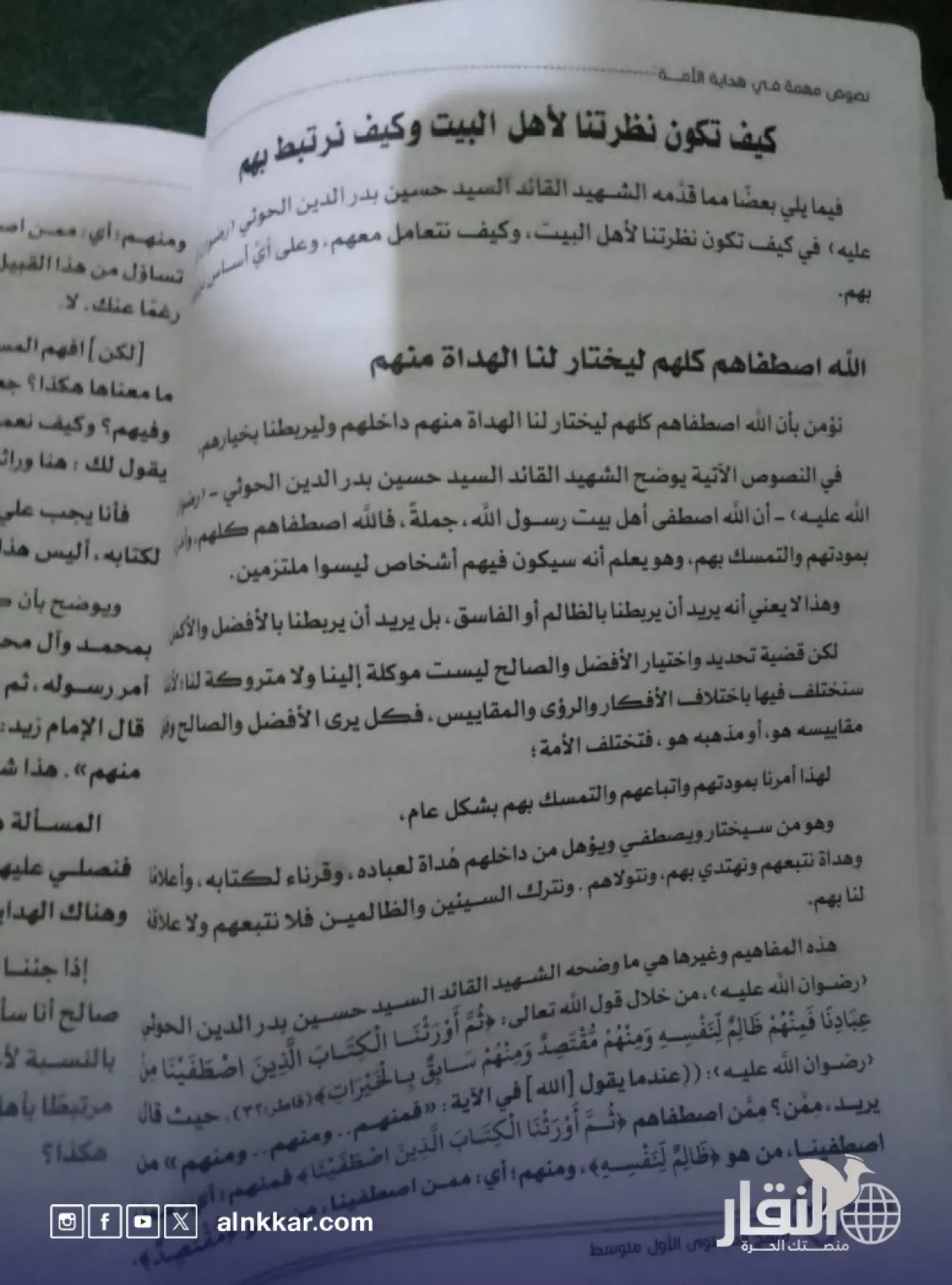 ​وفي هذا السياق، تسعى مناهج المرحلة المتوسطة تحديدا للتأكيد على أن الله اصطفى أهل البيت جملة، دون تمييز بين أفضلهم وأسوئهم، وأن الله هو المتكفل بالاختيار والاصطفاء، ما يكشف خطر التعبئة التي تسعى من خلالها الجماعة إلى تحويل الفرد منذ نشأته إلى مجرد "قن" خُلق لخدمة سلالة معينة.