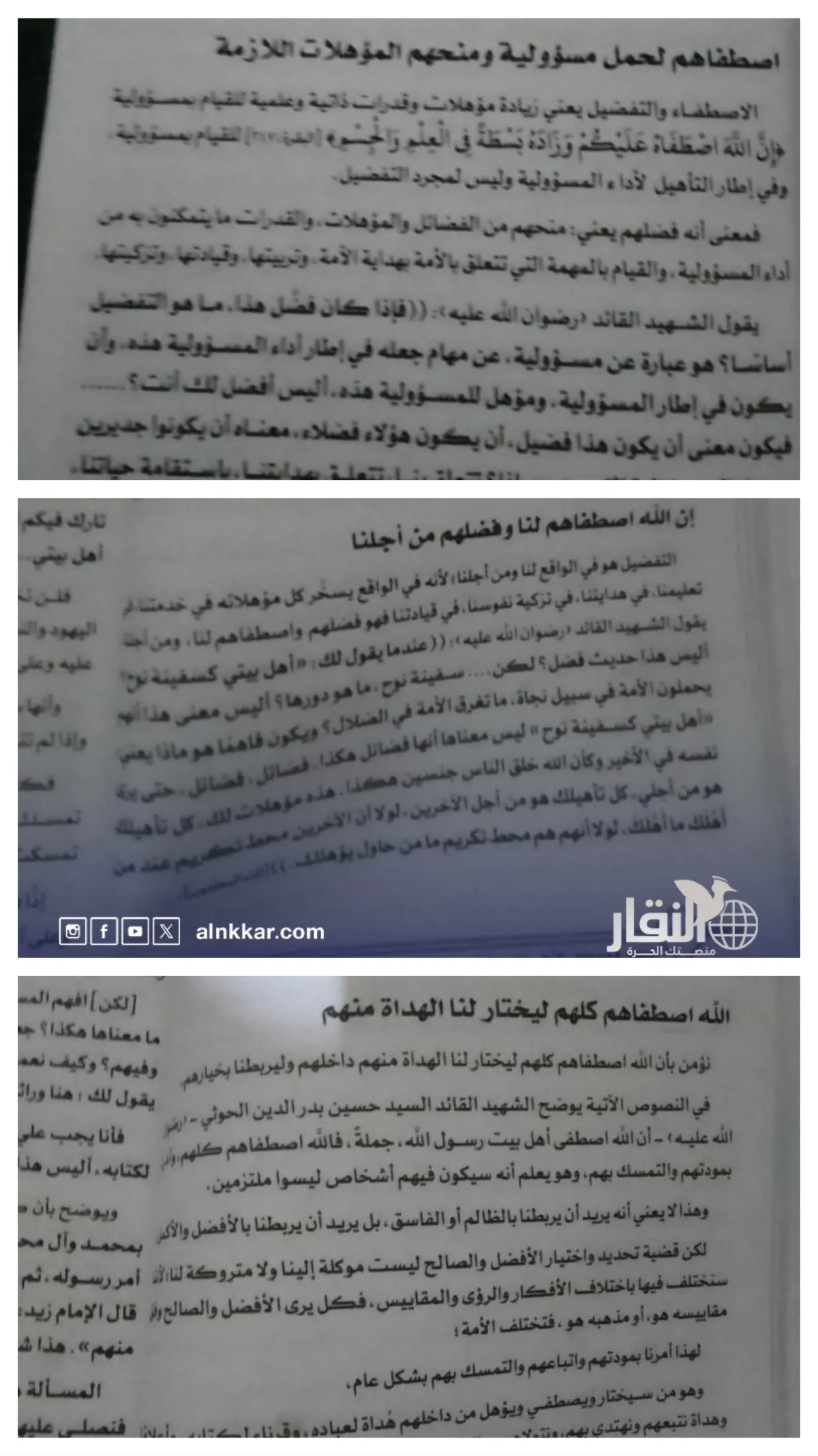 ​والأخطر من ذلك أن المناهج تبرر الاصطفاء والتفضيل لسلالة أهل البيت من كونها اصطفيت لمصلحة غيرها؛ لأنها المكلفة إلهيا بقيادتهم وخدمتهم وتعليمهم وتزكية نفوسهم، ما يعني أن الجماعة تسعى لأن تغرس في عقول النشء والشباب بأن القيادة والوصول إلى أعلى مراتب العلم يظل حكراً على سلالة محددة، وأن ما دونها مكلفون بالجهاد تحت قيادتها.
